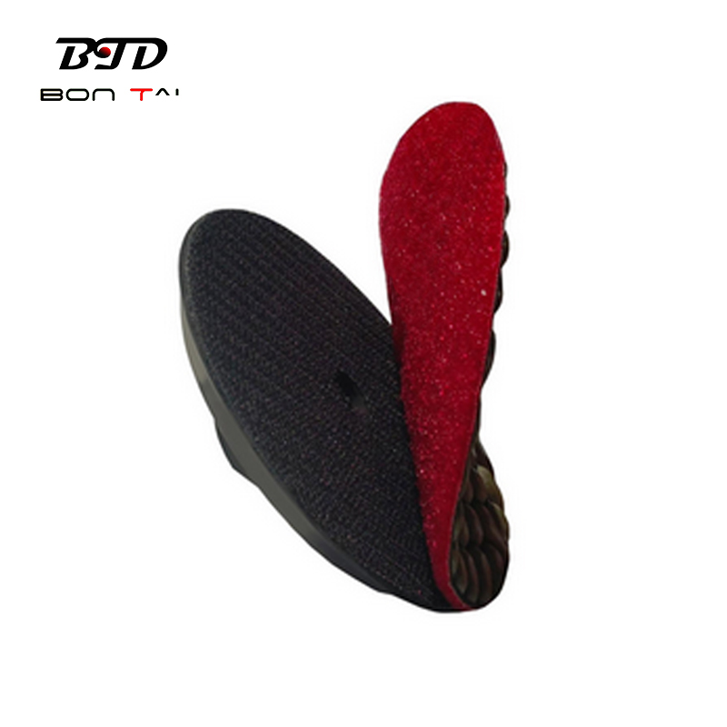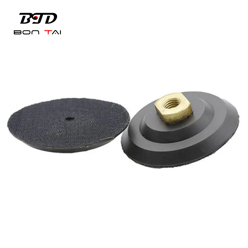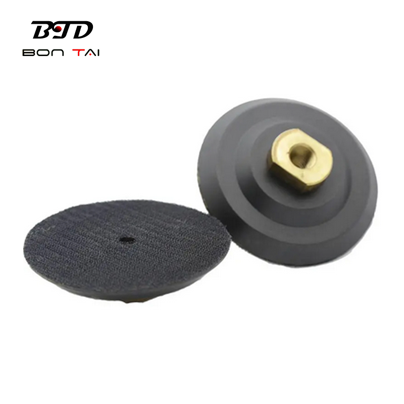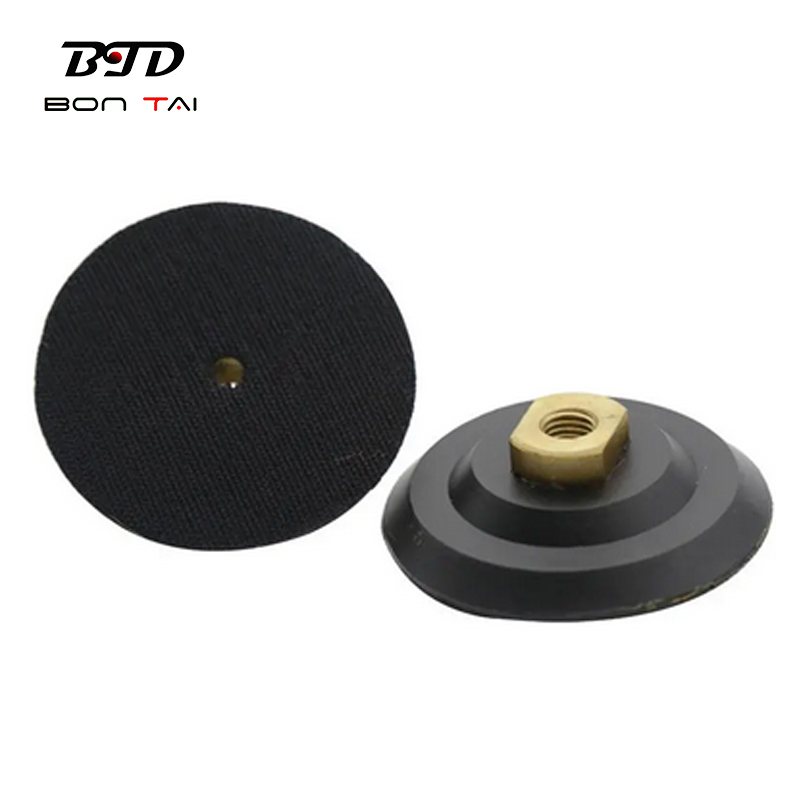 ਪੱਥਰ ਅਤੇ ਕੰਕਰੀਟ ਦੀਆਂ ਸਤਹਾਂ ਦੀ ਗਿੱਲੀ ਜਾਂ ਸੁੱਕੀ ਪਾਲਿਸ਼ਿੰਗ ਲਈ ਰਬੜ ਬੈਕਡ ਹੁੱਕ ਅਤੇ ਲੂਪ ਪੈਡ, ਉੱਚ ਗੁਣਵੱਤਾ ਵਾਲੇ, ਟਿਕਾਊ ਅਰਧ-ਲਚਕੀਲੇ ਰਬੜ ਤੋਂ ਬਣੇ। ਉੱਚ-ਗੁਣਵੱਤਾ ਵਾਲਾ ਵੈਲਕਰੋ ਜੋ ਪਾਲਿਸ਼ਿੰਗ ਪੈਡਾਂ ਜਾਂ ਹੋਰ ਵੈਲਕਰੋ ਨਾਲ ਜੁੜਦਾ ਹੈ, ਗੈਰ-ਸਲਿੱਪ ਅਤੇ ਟਿਕਾਊ ਹੈ, ਜੋ ਪੈਡਾਂ ਦੀ ਸਾਰੀ ਲੜੀ ਨੂੰ ਬਦਲਣ ਲਈ ਤੇਜ਼ ਅਤੇ ਆਸਾਨ ਪਹੁੰਚ ਪ੍ਰਦਾਨ ਕਰਦਾ ਹੈ। ਕੰਮ ਕਰਨ ਵਾਲੀਆਂ ਸਤਹਾਂ ਦੀ ਗਿੱਲੀ ਪਾਲਿਸ਼ਿੰਗ ਲਈ ਲੋੜੀਂਦੇ ਪਾਣੀ ਦੇ ਪ੍ਰਵਾਹ ਨੂੰ ਠੰਡਾ ਕਰਨ ਅਤੇ ਲੁਬਰੀਕੇਟ ਕਰਨ ਵਿੱਚ ਮਦਦ ਕਰਨ ਲਈ ਅੰਦਰੂਨੀ ਪਾਣੀ ਦੇ ਛੇਕ ਵਾਲਾ ਪਿੱਤਲ ਦਾ ਮੈਂਡਰਲ। ਬੈਕਿੰਗ ਪੈਡ ਰਬੜ ਜਾਂ ਐਲੂਮੀਨੀਅਮ ਦੇ ਬਣੇ ਹੁੰਦੇ ਹਨ, ਵੱਖ-ਵੱਖ ਸਮੱਗਰੀ ਉਤਪਾਦ ਦੀ ਲਚਕਤਾ ਨੂੰ ਨਿਰਧਾਰਤ ਕਰਦੀ ਹੈ ਅਤੇ ਇਸਦੀ ਉਮਰ ਨੂੰ ਬਹੁਤ ਵਧਾਉਂਦੀ ਹੈ। ਇਹ ਕਈ ਤਰ੍ਹਾਂ ਦੇ ਕੰਮਾਂ ਲਈ ਹੋਰ ਵਿਕਲਪ ਵੀ ਪ੍ਰਦਾਨ ਕਰਦਾ ਹੈ।